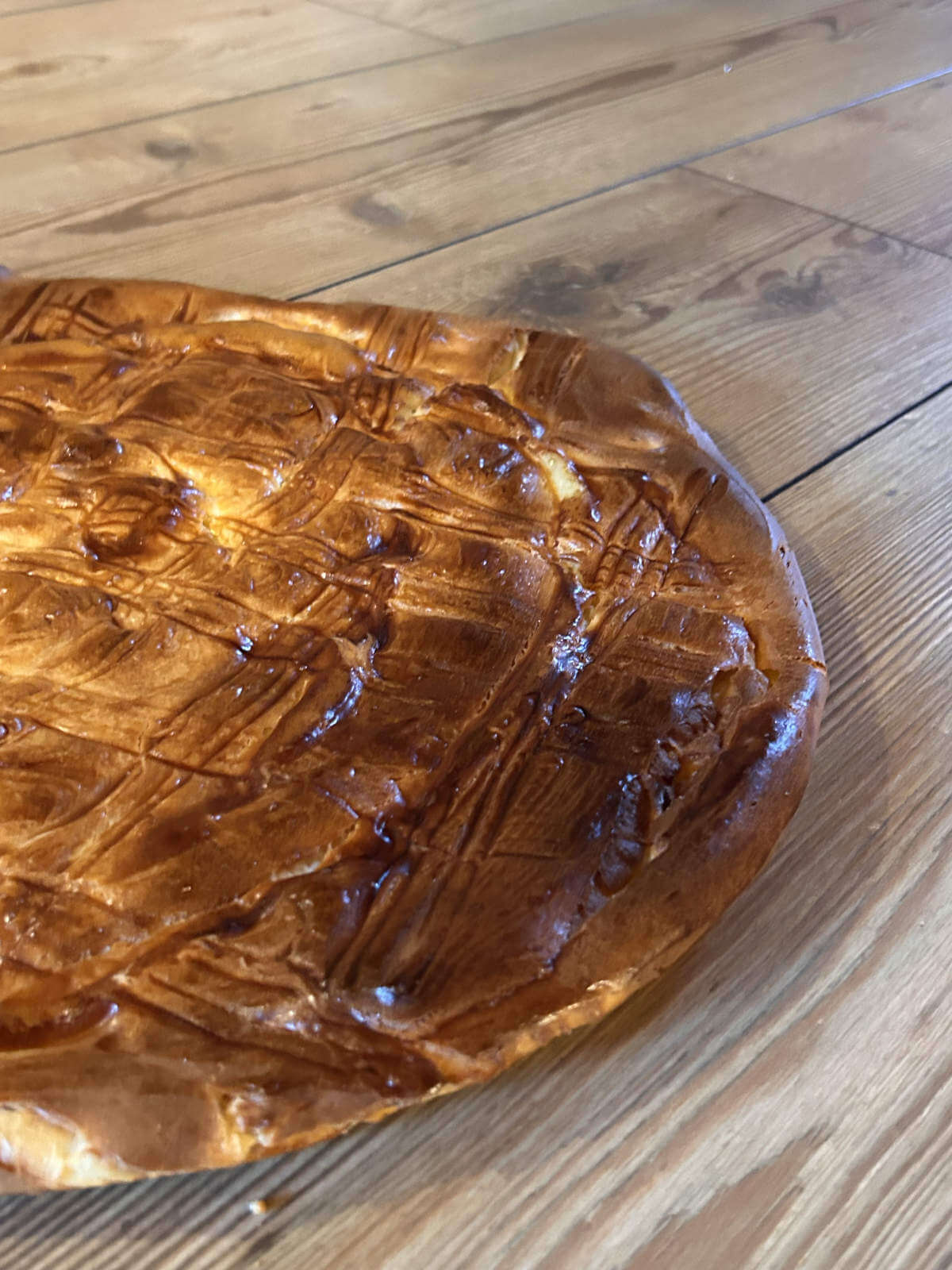 Laissez-vous séduire par cette spécialité ancestrale de Franche-Comté. Contrairement à la galette classique, notre galette comtoise est réalisée à partir d’une pâte à choux, légère et onctueuse, travailler avec du beurre des fruitières voisines et infuser à la fleur d’oranger. Sa texture unique, à la fois ferme à l’extérieur et incroyablement fondante à l’intérieur, en fait un dessert de partage doux et réconfortant. Une véritable parenthèse de gourmandise.